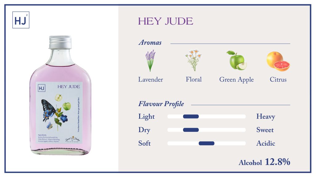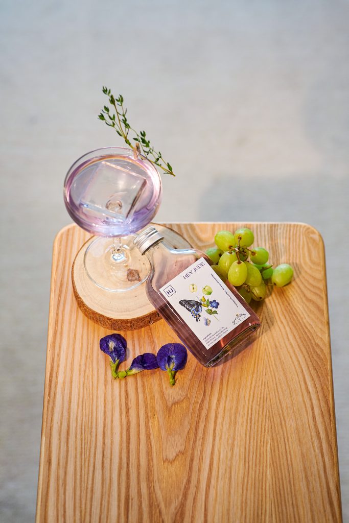 This aperitif cocktail is inspired by the White Sangria. Imagine the butterfly garden in Southern France through the Alsace Riesling and the floral notes from the Elderflower. The light violet shade from the alluring Butterfly Pea infused Gin brings back the tantalising glimpse of your loved one with a reminder of the sourness and saltiness in love through the Green apples and olives. The taste of your love has changed me forever.