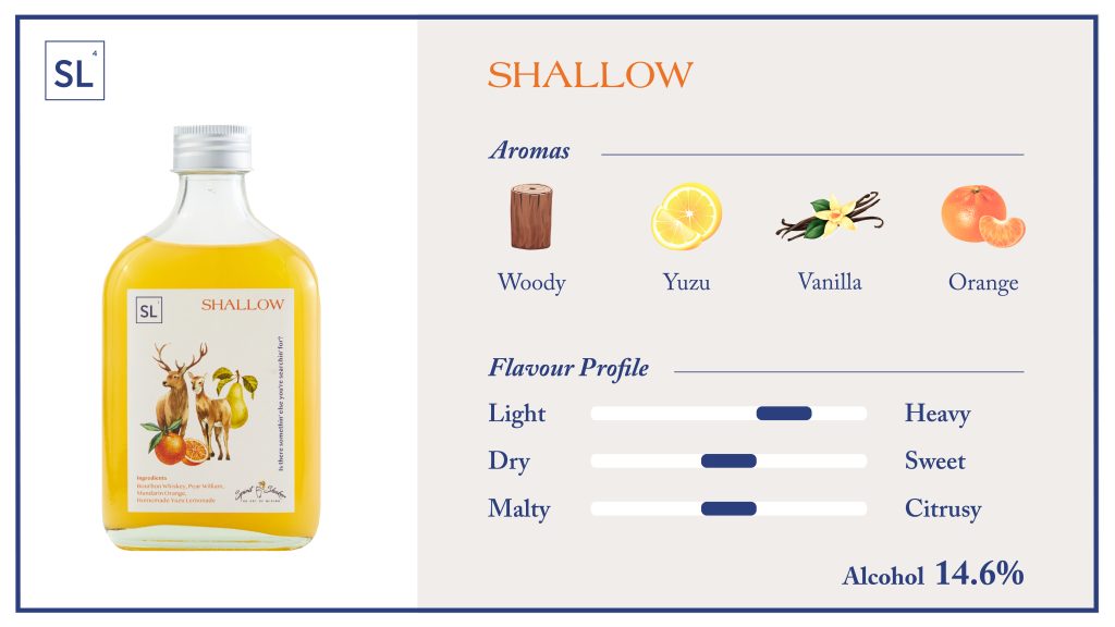 This drink has represented the acculturation between the East and the West by combining the Eastern Oriental tangy hint from the Mandarin Orange and Yuzu, with a Western touch from the juicy, soft William Pear. The higher amount of corn and malted barley in the Bourbons mellow the sourness of the citrus, layered with a long, malty, honeycomb-sweet finishing.